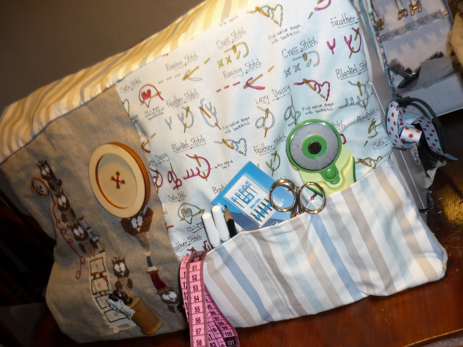 ho creato varie tasche per metterci tutto quello che utilizzo quando sono alla macchina, quindi forbici (che perdo costantemente e adesso mai più!!) metro, penne varie, aghi di ricambio insomma tutto l'indispensabile da avere sempre a portata di mano!!