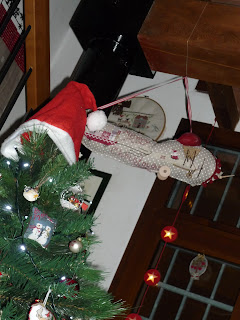 e lui .... lassù l'avete visto.. proprio sopra l'albero...Babbo Natale che con il suo aeroplanino ha già preso il volo!!!